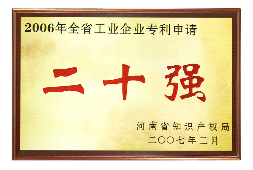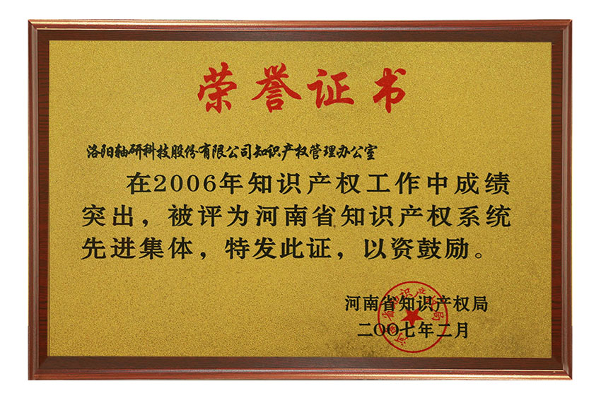在2006年知識產(chǎn)權(quán)工作中成績突出,被評為河南省知識產(chǎn)權(quán)系統(tǒng)先進集體