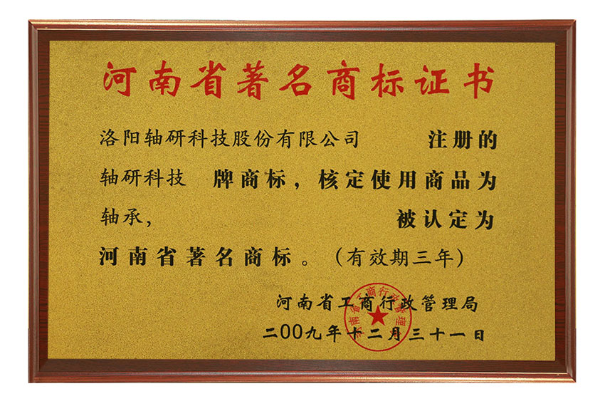 河南省著名商標證書